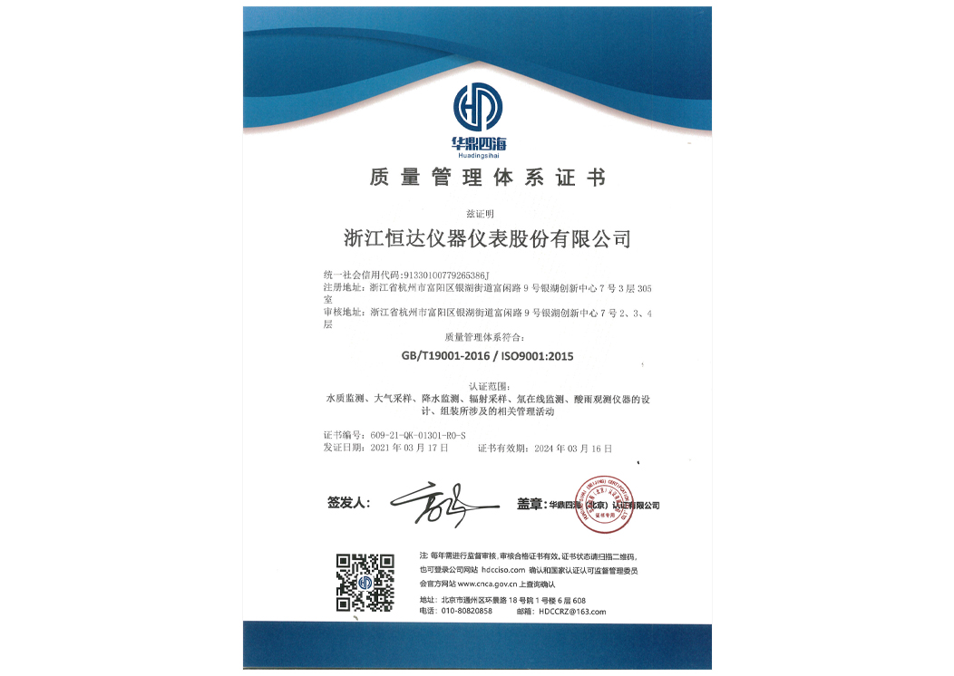 質(zhì)量管理體系證書