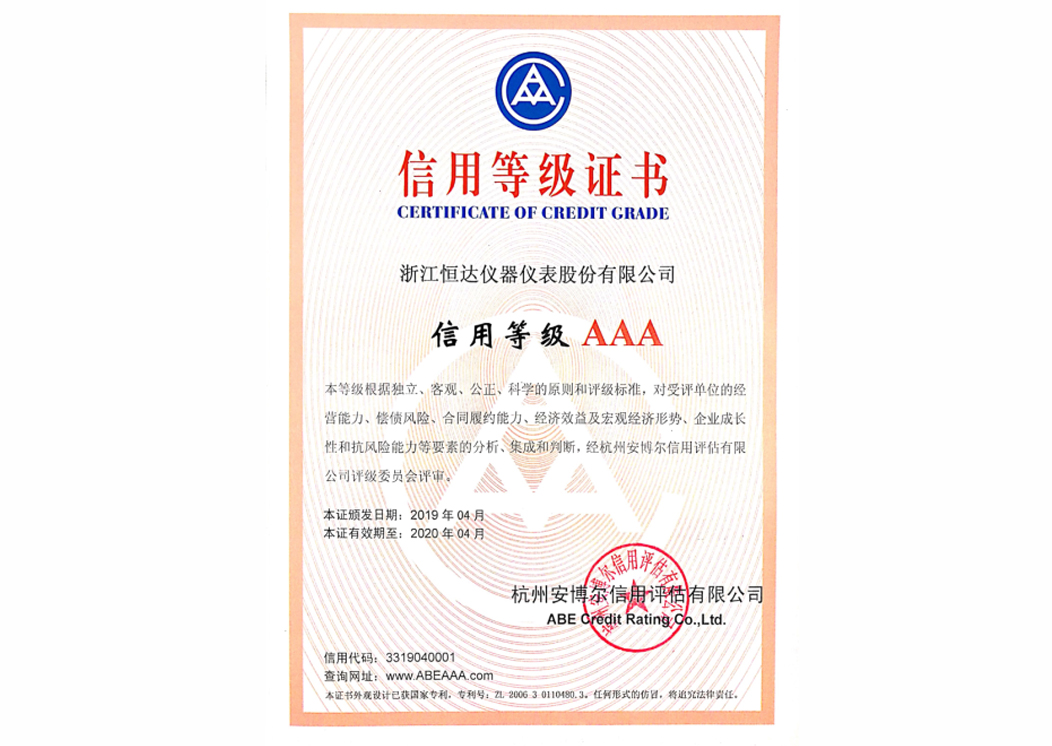 信用等級3A證書