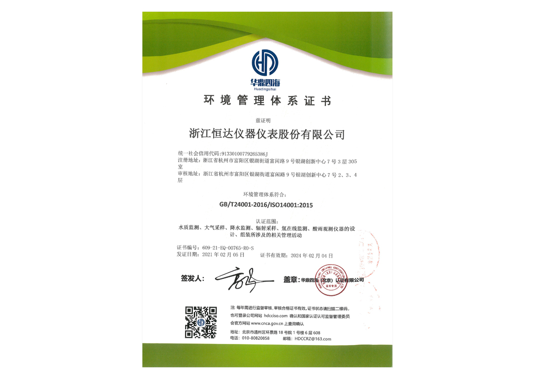 環(huán)境管理體系證書