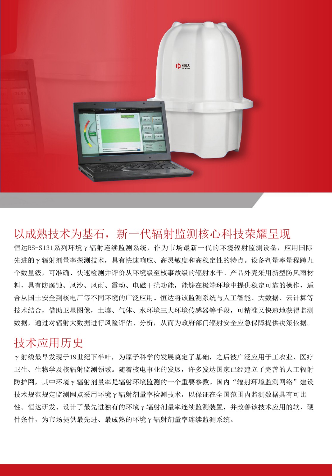 本產(chǎn)品為新一代的環(huán)境輻射監(jiān)測設備,在低劑量水平伽馬輻射的探測和測量方面提供了更加卓越的技術與表現(xiàn)。本產(chǎn)品繼續(xù)沿用前代產(chǎn)品的環(huán)境γ輻射劑量率監(jiān)測技術,但在以下多個關鍵領域進行了改進:靈敏性、可靠性、穩(wěn)定性。本產(chǎn)品采用新型防風雨外殼,電子器件和診斷原件都進行了更新,能夠在極端環(huán)境中提供穩(wěn)定可靠的操作,非常適合從國土安全到核電廠的各種廣泛應用。